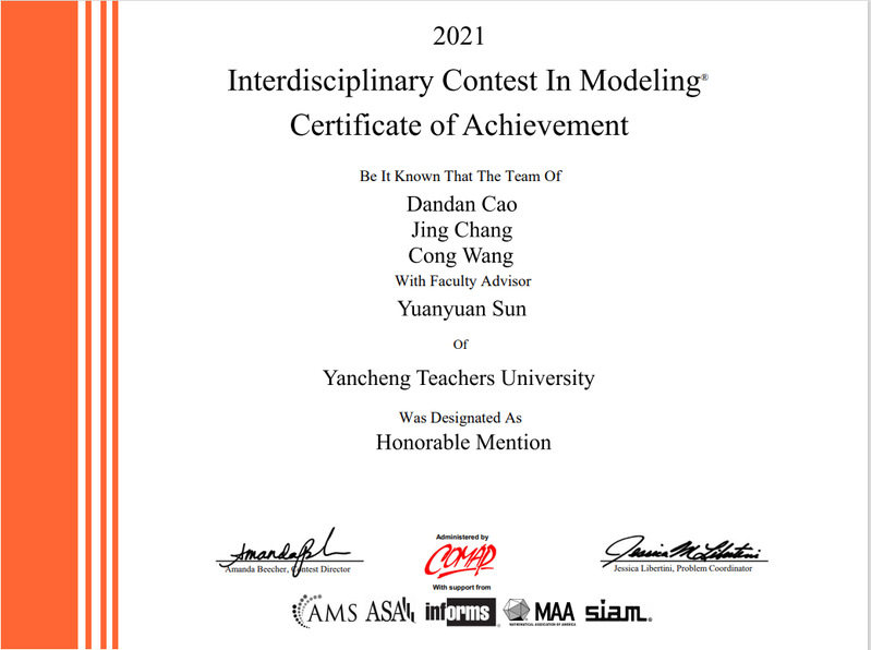 近日,2021年美国大学生数学建模竞赛(MCM/ICM)成绩已在其官网公布,在疫情防控的严峻形势下,在国际一等奖(M奖)和国际二等奖(H奖)获奖比例减半的新规则下,beat365学子迎难而上,共5支参赛队伍喜获国际二等奖(Honorable Mention),其中数学与统计学院1支队伍、信息工程学院4支队伍获奖。本次大赛beat365共有11支队伍共计33名成员参加,其中数学与统计学院2支,信息工程学院9支。由于疫情防控需要,竞赛采用线上答辩模式。在各位...
