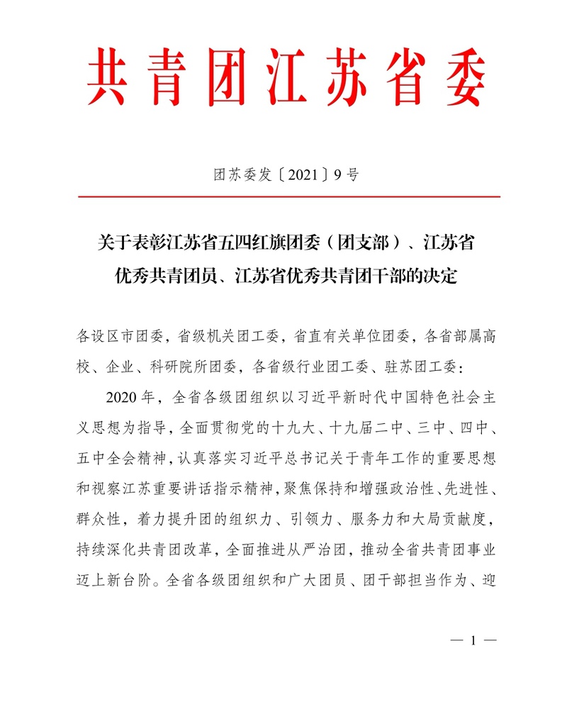 五四前夕,共青团江苏省委印发《关于表彰江苏省五四红旗团委(团支部)、江苏省优秀共青团员、江苏省优秀共青团干部的决定》(团苏委发〔2021〕9 号),教育科学学院团总支荣获“江苏省五四红旗团总支”荣誉称号。2020年,教育科学学院团总支抓好伟大抗疫精神宣传教育和“四史”学习,提升团的引领力;依托“智慧团建”系统,依章依规进行团员教育管理、三会两制一课和推优入党,提升团的组织力;广泛开展生涯指导和技能训练...