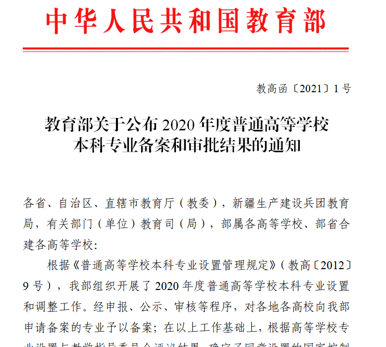 近日,教育部发文公布2020年度普通高等学校本科专业备案和审批结果(教高函〔2021〕1号),beat365野生动物与自然保护区管理(090202)和航空服务艺术与管理(130208TK)2个新专业成功通过教育部备案。农学为beat365新增学科门类,至此,beat365本科专业涵盖经济学、法学、教育学、文学、历史学、理学、工学、农学、管理学、艺术学等10大学科门类。此次新专业申报是beat365适应区域经济发展的重大举措,也是beat365优化专业结...