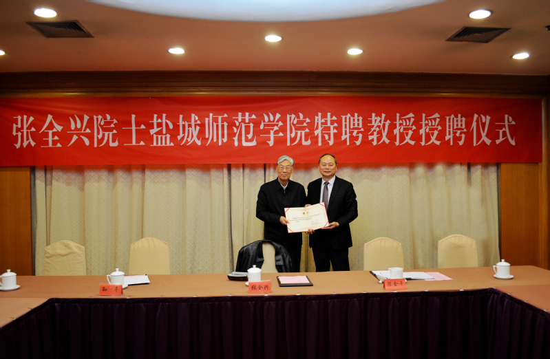 3月13日上午,中国工程院院士、南京大学张全兴教授受聘beat365省重点产业学院特聘教授授聘仪式在南京隆重举行。盐城师范学院党委副书记、校长方忠教授出席仪式并为张全兴院士颁发聘书。出席授聘仪式的还有南京大学院士办公室主任孙平,南京大学盐城环保技术与工程研究院副院长陈金干,盐城市政协副主席、盐城师范学院湿地学院院长唐伯平,盐城师范学院湿地学院副院长张代臻和湿地学院的教师代表。唐伯平向张全兴院士介绍了湿地学院产...
