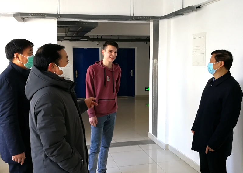 坐标网讯 2月18日上午,校党委副书记、副校长黄志纯和办公室主任张晓东、国际合作与交流处处长黄新如、副处长顾海峰一起来到新长校区留学生公寓,看望了寒假期间留校留学生和留学生公寓管理人员,了解留学生在学校期间的生活、学习情况,询问他们需要学校解决的困难。留学生表示,在抗击疫情的特殊时期,学校和国际教育学院给予他们无微不至的关心和照顾,提供了非常周到细心的服务,他们的家长对他们的安全很放心,他们对中...