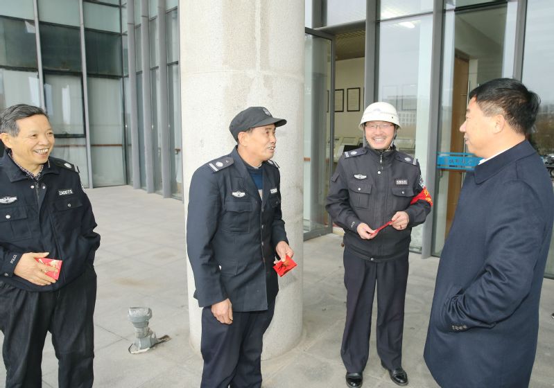 坐标网讯 1月24日,农历庚子鼠年除夕。当天下午,党委书记戴斌荣慰问了除夕夜值班的保卫处、后勤保障集团的职工代表,感谢他们牺牲与家人团圆的时间,坚守岗位,保卫学校的安全,保障学校的运行,向也们致以新年的祝福,并送上慰问红包。 党委常委、党委宣传部长、新闻中心主任冯永玲,党办校办主任张晓东、副主任姚林,后勤保障集团党总支书记蔡志宏、总经理陆咸良,保卫处副处长韩朝春等一起参加了慰问。