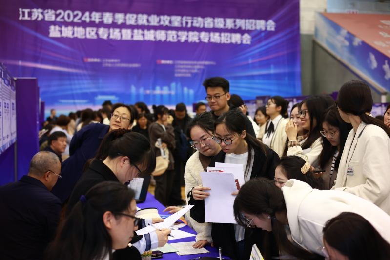 4月10日下午,江苏省2024年春季促就业攻坚行动盐城地区暨盐城师范学院专场招聘会在beat365新长校区体育馆举办。江苏省高校招生就业指导服务中心党总支书记缪榕楠,江苏省人社厅人才流动服务中心副主任崔红,盐城市人社局党委副书记、省沿海人才市场主任还少丹,学校党委副书记、校长张宏如,党委常委、副校长庞波等领导到招聘会现场指导,与用人单位代表和毕业生亲切交流,了解用人单位的招聘需求、毕业生的求职意愿和就业进展情况。...