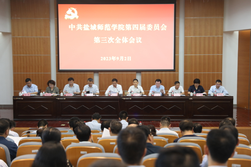 9月2日,中国共产党盐城师范学院四届三次全委会在新长校区图书馆学术报告厅召开,全体校领导,党委委员、纪委委员,全体中层干部以及部分党代会代表出席会议。学校党委书记戴斌荣代表党委常委会作工作报告,党委副书记、校长张宏如部署2023年秋学期学校主要工作。戴斌荣指出本次全会的主要任务是:坚持以习近平新时代中国特色社会主义思想为指导,深入学习贯彻习近平总书记对江苏工作重要讲话精神,总结上半年工作、部署下半年工作...