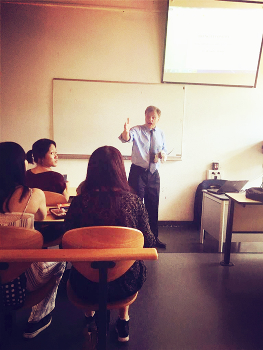 让我印象最为深刻的一门课程叫做法国经济,教授是一名40岁左右的法国人,在课堂上他永远保持着激昂而高亢的状态,不时的用一些特别的举动(拍桌子、踢板凳)来抒发他内心狂热的情绪,他始终在给我们说一句:“You are global decision makers”,鼓励我们在课堂上畅所欲言。每次听他的课时,我的内心都会受到几丝震撼,都会想成为一名真正的经济思想者,在日常的生活、学习中去发现经济学的奥秘。