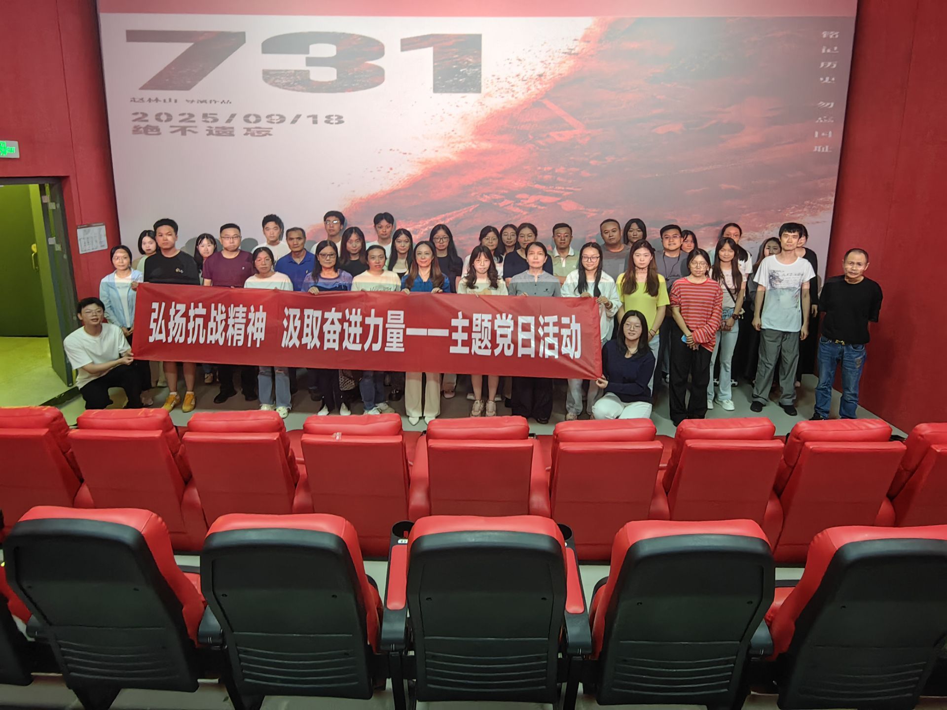 9月23日下午,为纪念中国人民抗日战争暨世界反法西斯战争胜利80周年,弘扬伟大抗战精神和爱国主义精神,学院党委组织开展了“光影铭记历史 初心砥砺前行”--观影《731》主题党日活动,学院近60名师生党员参与活动。