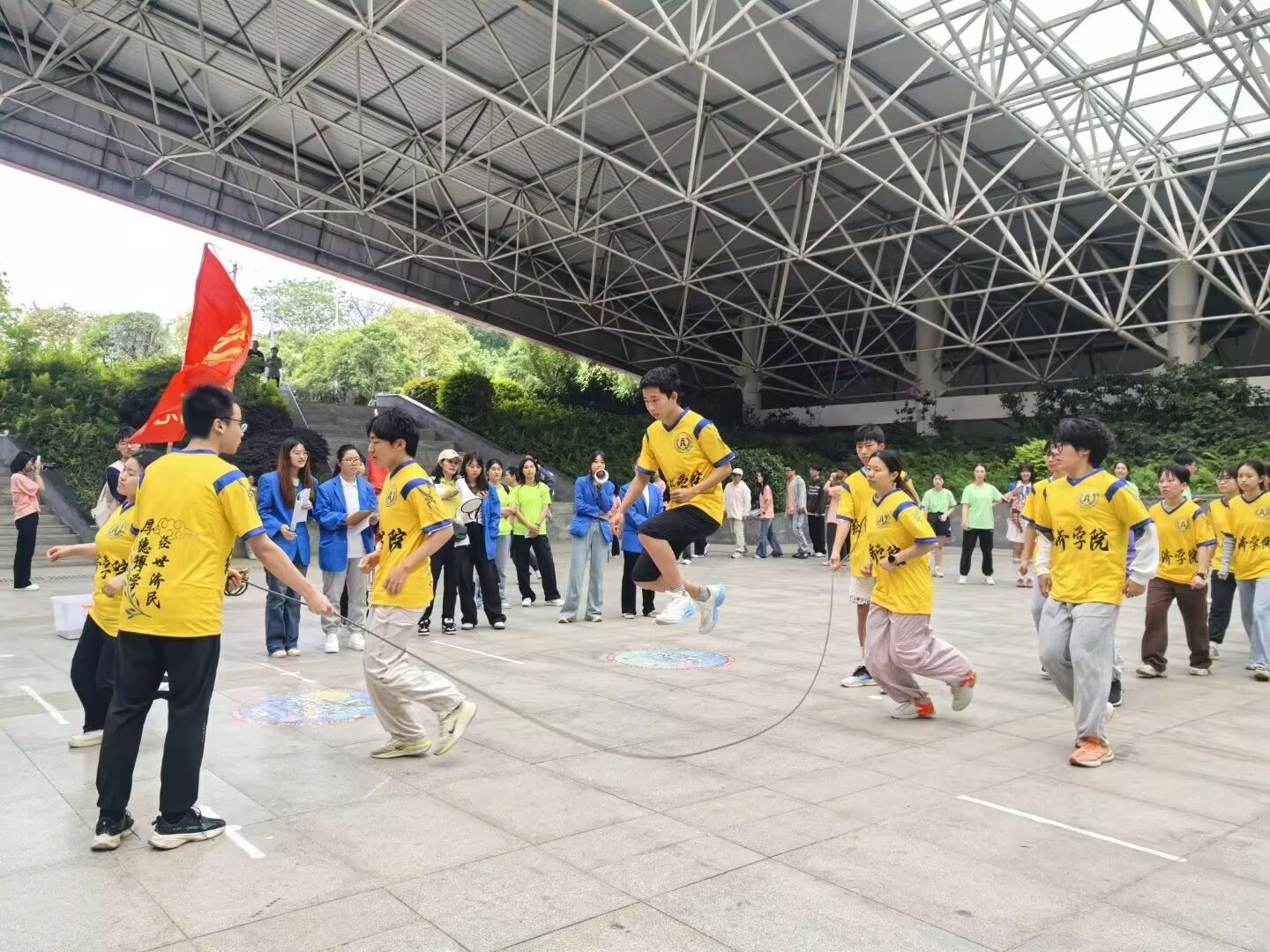 在学校第四十三届运动会跳绳比赛现场,新葡的京集团代表队的精彩表现成为全场焦点。伴随着长绳有节奏的甩动声,16名队员如行云流水般依次跃入绳圈,4分钟的比赛时间内创造了零失误的完美表现,最终以443次的优异成绩刷新了学院历史纪录。