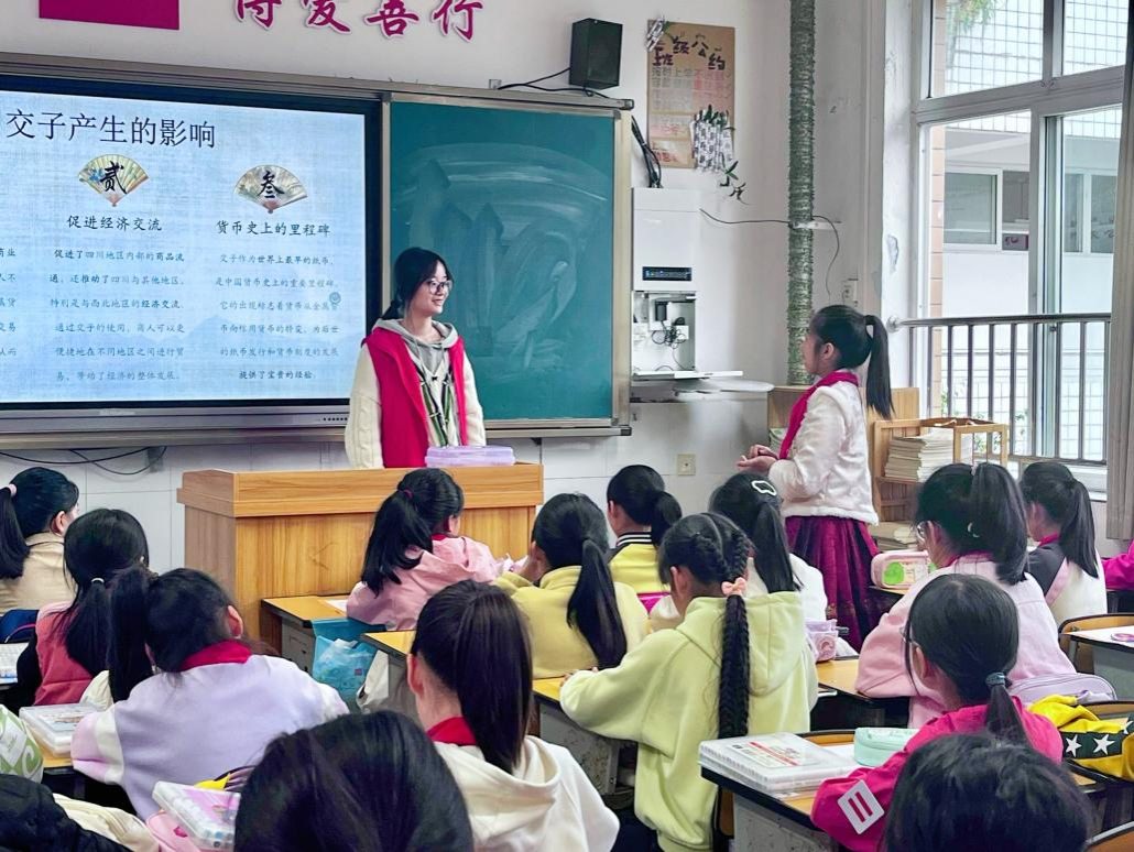 10月25日下午,新葡的京集团3512vip团委志工部的同学们去往温江区东大街第一小学,带领孩子们开启了一场历史与现实相交织的旅途,来到宋朝,与苏轼“对话”,揭开纸币“交子”神秘的面纱。