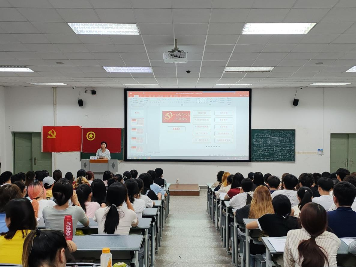 在《中国共产党的指导思想》专题讲座中,学院党委办公室主任兼团委书记钟贝以马克思主义与中国实践相结合的三次理论飞跃为时间轴,阐述了近百年来中国共产党如何以马克思主义为指导思想来实现中华民族伟大复兴的奋斗进程,梳理了站起来、富起来到强起来的伟大历史性飞跃的历史逻辑、实践逻辑和发展逻辑。