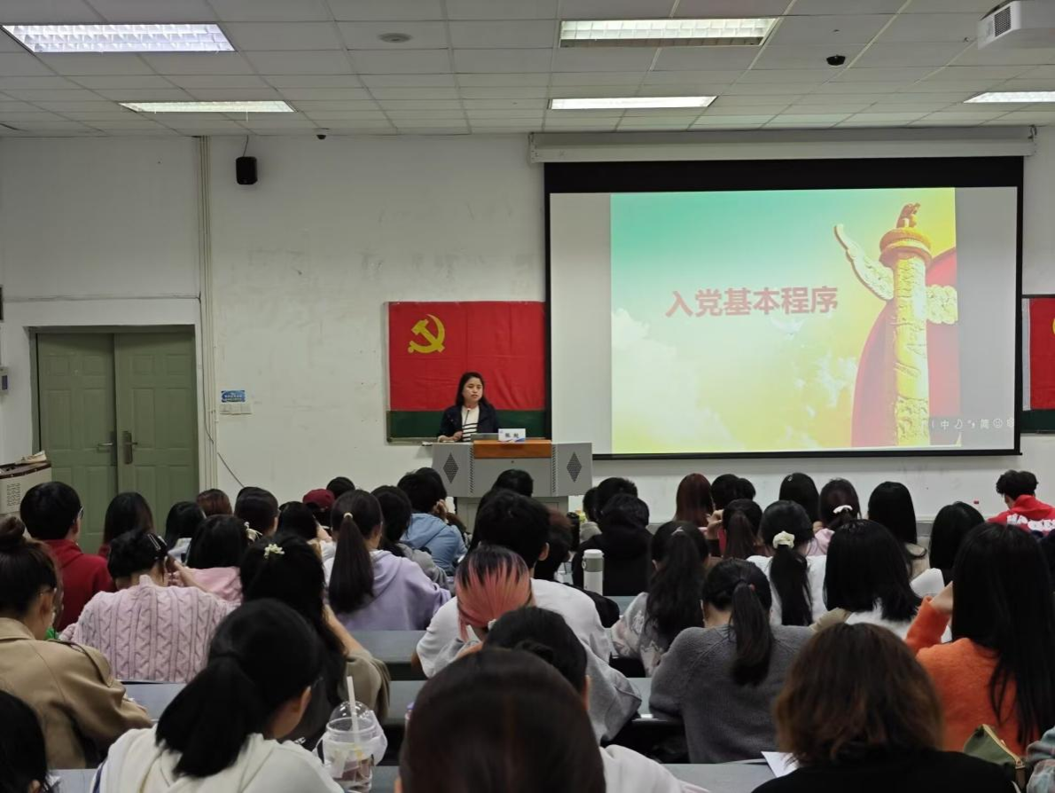 学院党委副书记、纪委书记张翅带领学员们共同学习了入党基本程序。她详细地讲解了入党申请书的提交、入党积极分子的确定和入党积极分子的培养教育等关键步骤和主要内容。她指出,入党积极分子只有了解到这一流程对于确保党员质量、维护党的先进性和纯洁性具有重大意义,才能更好的明白入党的意义,才能进一步端正入党动机。